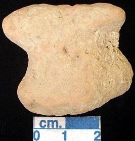 | Description / विवरण | A terracotta archaic human figurine with broken head, red, short out stretched arms, pin hole navel, both short wide legs are joined each other, treated with red wash, handmade. |