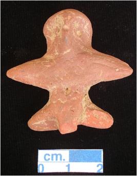 | Description / विवरण | An archaic human terracotta figurine with round head , red in colour, punched eyes, pinched nose and mouth, short out stretched pointed arms, pin hole navel, short wide bridged stumpy legs, phallus indicated, handmade. |