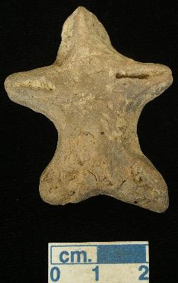 | Description / विवरण | A terracotta archaic human figurine with small head, grey colour, punched eyes, pinched nose, short out stretched stumpy arms with one deep incised lines in each, short wide bridged stumpy legs with one deep incised lines in each, handmade. |