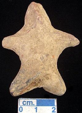 | Description / विवरण | An archaic human terracotta figurine, red, pinched nose, split mouth, short out stretched arms, shrot wide bridged stumpy legs, punched eyes, punched navel , handmade. |