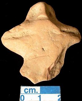 | Description / विवरण | A star shape archaic terracotta human figurine with round head, red, pinched nose, punched eyes, slit mouth, short out stretched arms with one incised line on each, punched navel, both legs are broken, treated with red wash, handmade. |