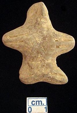 | Description / विवरण | An archaic terracotta human figurine with round head, red, pinched nose, pin hole eyes, slit mouth, short out stretched arms with two incised line in each, shrot wide bridged stumpy legs, treated with red wash, handmade. |