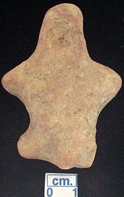 | Description / विवरण | An archaic terracotta male figurine, red, pinched nose, pin hole eyes, slit mouth, short out stretched arms, punched navel, shrot wide bridged stumpy legs, phallus indicated, treated with red wash, handmade. |