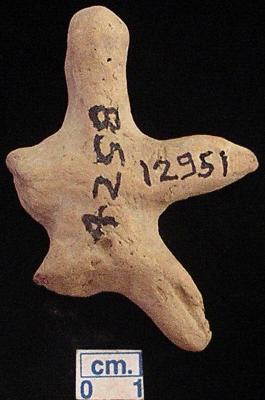 | Description / विवरण | An archaic terracotta human figurine, red, pinched nose, short out stretched arms but left arm is broken, shrot wide bridged stumpy legs and left leg is damaged, treated with red wash, handmade. |