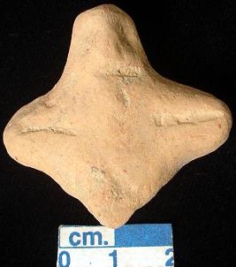 | Description / विवरण | A terracotta archaic human figurine, red, pin hole eyes, pinched nose, slit mouth, short out stretched arms with one incised line in each, punched navel, broken legs, treated with red wash, handmade. |