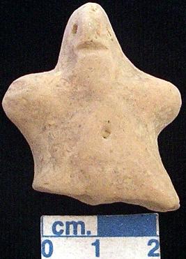 | Description / विवरण | A terracotta archaic human figurine, red, pin hole eyes, pinched nose, slit mouth, short out stretched arms, pin hole navel, both short legs are broken, treated with red wash, handmade. |