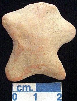 | Description / विवरण | A terracotta archaic human figurine with broken head, red, short out stretched arms, short wide bridged stumpy legs, treated with red wash, handmade. |