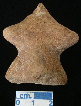 | Description / विवरण | A star shaped terracotta archaic human figurine with short head, punched eyes, pinched nose and slit open mouth, short out stretched stumpy arms, short wide bridged stumpy legs and treated with red wash. |