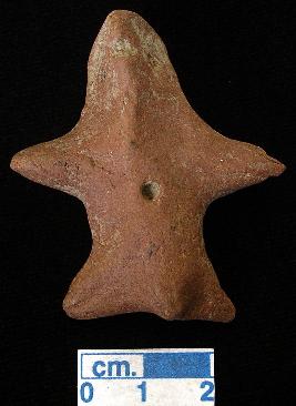 | Description / विवरण | A terracotta archaic human figurine with round head, punched eyes, pinched nose and slit open mouth, short out stretched stumpy arms, punched navel, phallus indicated, short wide bridged stumpy legs and treated with red wash. |