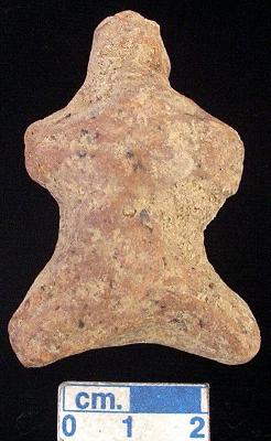 | Description / विवरण | A terracotta archaic human figurine with damaged head, red, short out strtched arms, short wide bridged stumpy legs, treated with red wash, handmade. |