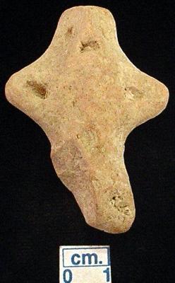 | Description / विवरण | An archaic terracotta human figurine with round head, red, pinched nose, pin hole eyes, slit mouth, short out stretched arms with one incised line in each, shrot wide bridged stumpy legs with incised line but right one is damaged, treated with red wash, handmade. |
