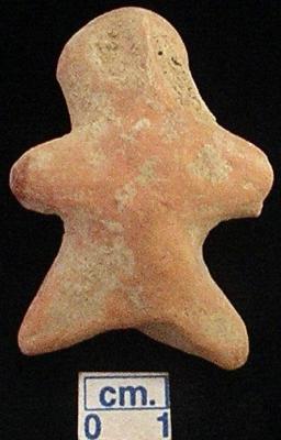 | Description / विवरण | An archaic terracotta human figurine with round head, red, pinched nose,punched eyes, short out stretched arms, shrot wide bridged stumpy legs, treated with red wash, handmade. |