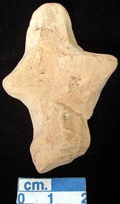| Description / विवरण | A terracotta archaic human figurine, red, broken head, short out stretched arms, punched navel, broken legs treated with red wash, handmade. |