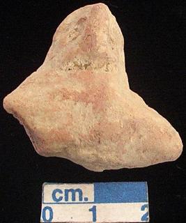 | Description / विवरण | An archaic terracotta human figurine, red,pin hole eyes, pinched nose, open slit mouth, short out stretched arms but the right one is broken , lower portion is broken, treated with red wash, handmade. |