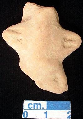 | Description / विवरण | A terracotta archaic human figurine, red, pin hole eyes, pinched nose, slit mouth, short out stretched arms with two incised line in each, punched navel, broken legs, treated with red wash, handmade. |