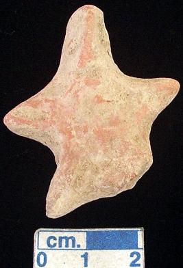 | Description / विवरण | An archaic human terracotta figurine, red, pinched nose, slit mouth, short out stretched arms, short legs are damaged, punched eyes, punched navel, handmade. |