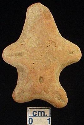 | Description / विवरण | A terracotta archaic human figurine with round head, red colour, face is not clear, short out stretched arms with one incised line in each , short wide bridged stumpy legs with one incised line in each, punched navel, treated with red wash, handmade. |