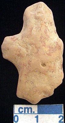 | Description / विवरण | A terracotta archaic human figurine, red, pinched nose, short out stretched arms but the left one is broken, pin hole navel, both short legs are broken, treated with red slip, handmade. |