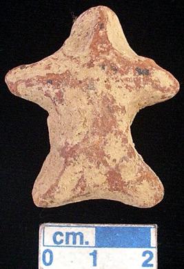| Description / विवरण | An archaic human terracotta figurine, red, pinched nose, slit mouth, short out streched arms , hort wide stumpy legs, punched eyes, punched navel, handmade |
