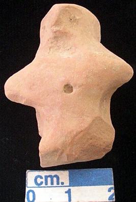 | Description / विवरण | A terracotta archaic human figurine, red, pinched nose, short out stretched arms, short streached legs, punched navel, treated with red wash, handmade. |