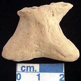 | Description / विवरण | A terracotta archaic human figurine, dull red, upper portion is broken, short wide bridged legs, treated with red wash, handmade. |