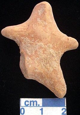 | Description / विवरण | A terracotta archaic human figurine, red, pinched nose, short out stretched arms but the left one is slightly broken, short wide bridged stumpy legs but the right one is broken, treated with red wash, handmade. |