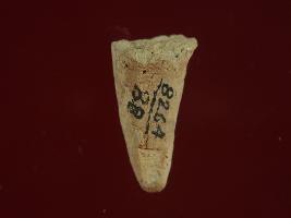 | Description / विवरण | Trench FX-3, LxB-D XXXI3 .00 mtrs x 3.50 mtrs - 3.40 mtrs Below peg XXVII3, Stratum Layer 15 This is an animal s leg made up of baked clay. Some irregular marks allover the surface. Appearance is of brown colour. |