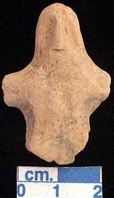 | Description / विवरण | A terracotta archaic human figurine, red, pinched nose, both short out stretched arms are broken, both short legs are broken, treated with red wash, handmade. |