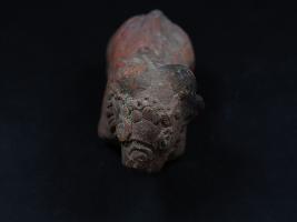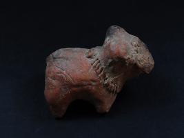 | Description / विवरण | It is an animal figurine made of terracotta.Its colour is red.It has projected eyes and well decorated face.There is a dotted belt around neck.It is well fired object.Deposition is dirt and dust. |