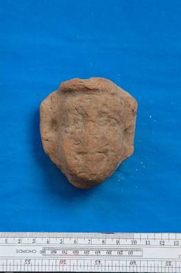 | Description / विवरण | Terracotta head having broad ears with an depression on it. |