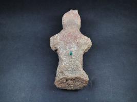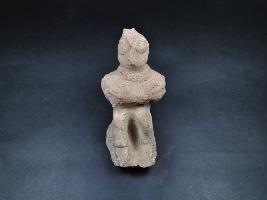 | Description / विवरण | It is a human figurine made of terracotta.Its face details are not clear visible.It is sited on a padestal.Its both hands are put on his knee.The figurine well fired and color is red.It has pinched mouth and head. |