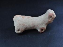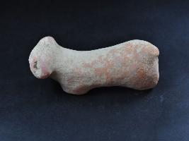 | Description / विवरण | It is a sheep figurine made of terracotta.Its all legs are lost.It has some cut line on mane.the face detail are not clear visible.It is well fired and color is red.Its mouth is broken. |
