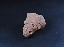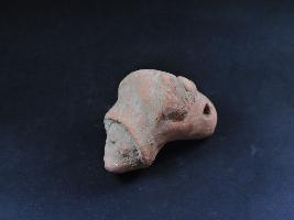 | Description / विवरण | It is a animal head made of terracotta.It is well fired and color is red and brown.Its face details are not clear visible.It has some incised design on it. |