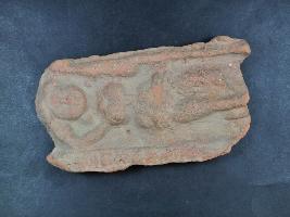 | Description / विवरण | It is a female figurine made of terracotta. It is well fired and colours is red.Its right hand is upperise.Its wearing sari and some ornament that are not clear visible.Its broken from botom side.It has border both left and right side. |