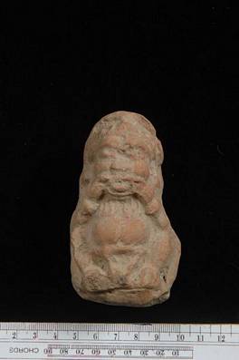 | Description / विवरण | Seated figure of a nude yaksha opening his mouth with both of his hands. It has prominent belly. |