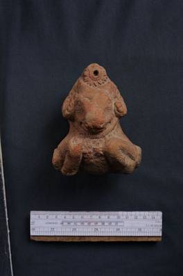 | Description / विवरण | Model of a ram used as the body of a cart. Forelegs turned inward. A lotus rosette seen at the top of the head. |