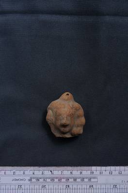 | Description / विवरण | Terracotta male head. Hair parted in the middle. There is a high bump on the backside of the head. Eyes much weatherworn. Nose shown prominently. |