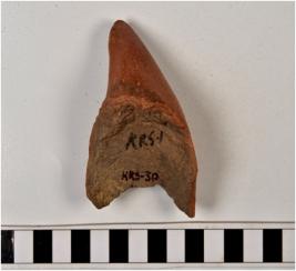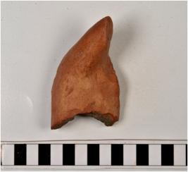 | Description / विवरण | A fragment of a terracotta leg of animal figurine of medium fabric. |