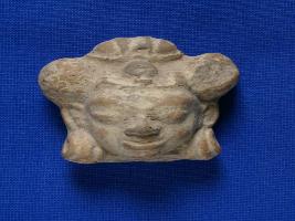 | Description / विवरण | Head of a female. Wing-shaped plaited hair flanking the crest-jewel. A topknot without hole. A wheel shaped pendent may be seen in both ears. Well baked to red colour with white paint. |