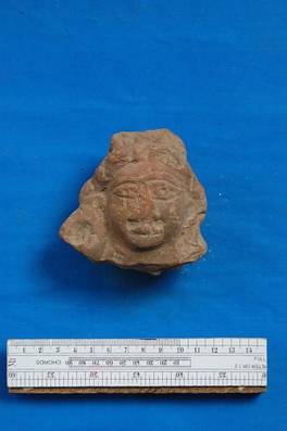 | Description / विवरण | Terracotta head. Nose, mouth and left ear damaged. Head and eye also injured. |