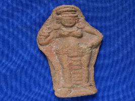 | Description / विवरण | Standing female figurine a headdress, crescent shaped or disc like ear ornament in both ears. A thin line runs all along the boarder of the figurine. Moulded and red colour. |