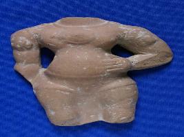 | Description / विवरण | Headless male figure from neck to knee. He wears a short loin-cloth, a neck-string with large disc-pectoral and flower armlets; his left hand is akimbo and right hand suspended on side. Colour light red, moulded. |