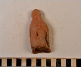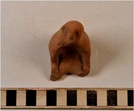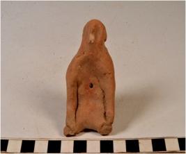 | Description / विवरण | A terracotta human figurine seated in yogic posture, pinched nose and ears, hole on chest joined arms with waist, broken legs of rough surface. |