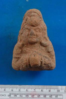 | Description / विवरण | Upper part of a toy cart showing a male figure with folded hands hair arranged in well preserved coil. |