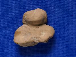 | Description / विवरण | Bust of a hand made human figurine probably seated position, wearing conical cap, hands broken and lower part is missing. Well baked to red colour. |