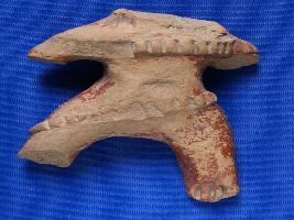 | Description / विवरण | Human figurine, Head, both arms and right leg is missing. Appliqu and vertical incised design on chest and shoulder. Appliqu and vertical incised design in oblique form is also used in left waist to right thigh. Fingers of the left leg are shown by incised design. Red slipped colour and handmade. |