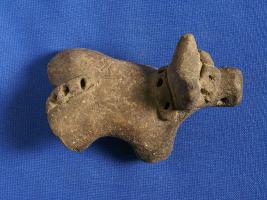 | Description / विवरण | Indeterminate animal figurine. Appliqu band with hole on neck, head and back portion all legs are broken mouth indicated by incised dash. A transverse hole throw the mouth indicated that this figurine was used as toy. Handmade to black colour |