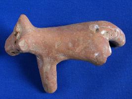 | Description / विवरण | Fragment of cow figurine. Forehead is decorated by appliqu pierced band. Transverses hole through mouth. Front right and hind left legs are broken. Scantly curved on right leg appliqu pierced band is used for tail. Handmade, red colour. |