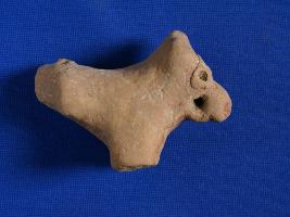| Description / विवरण | Fragment of cow. Forehead is decorated by appliqu pierced band. Same is used for tail. Hind legs with some portion of back are missing and front legs are broken. Transverse hole through mouth. Handmade, red colour. |
