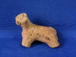 | Description / विवरण | Fragment of an animal figurine, like humpless bull ,shown by applique band with pierced hole through the mouth indicating that the figurine was used as toy. Right ear and mouth is broken. Applique band with pierced hole on forehead. Incised pointed decoration below on the neck. Applique band with pierced hole like tail on the back side. |